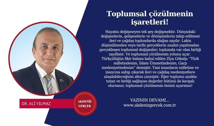 Türkçülüğün fikir babası kabul edilen Ziya Gökalp: “Türk milletindenim, İslam Ümmetindenim, Garp medeniyetindenim” demiştir. Yani insanların milletine ve inancına sahip çıkarak ileri ve çağdaş medeniyetlere ulaşılabileceğinin altını çizmiştir. Eğer toplumu ayakta tutan ve birliği sağlayan değerler bütünü ile kavgalı olursanız; toplumsal çözülmenin önünü açarsınız!