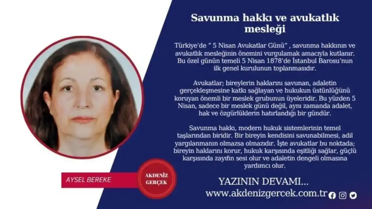 Avukatlar; bireylerin haklarını savunan, adaletin gerçekleşmesine katkı sağlayan ve hukukun üstünlüğünü koruyan önemli bir meslek grubunun üyeleridir. Bu yüzden 5 Nisan, sadece bir meslek günü değil, aynı zamanda adalet, hak ve özgürlüklerin hatırlandığı bir gündür.