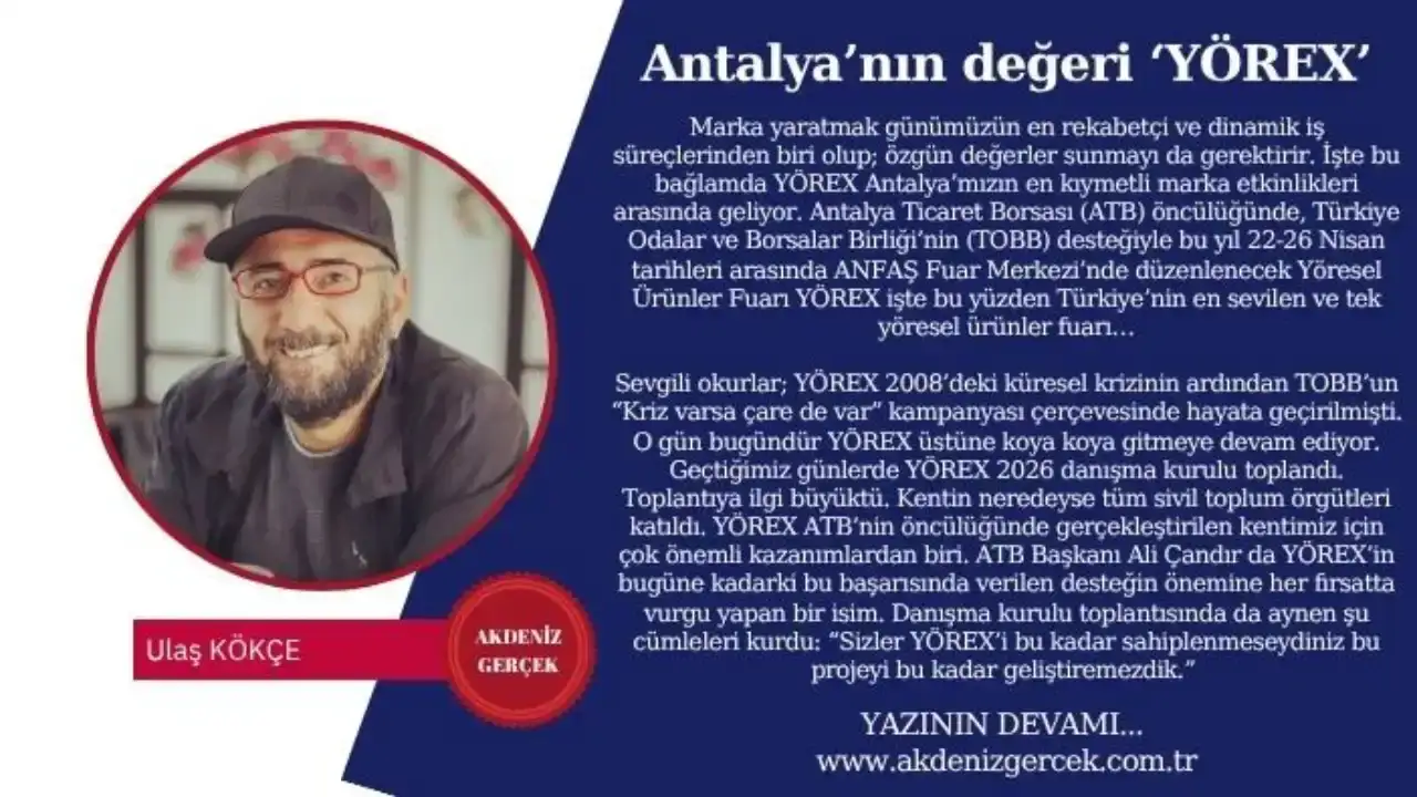Sevgili okurlar; YÖREX 2008’deki küresel krizinin ardından TOBB’un “Kriz varsa çare de var” kampanyası çerçevesinde hayata geçirilmişti. O gün bugündür YÖREX üstüne koya koya gitmeye devam ediyor. Geçtiğimiz günlerde YÖREX 2026 danışma kurulu toplandı. Toplantıya ilgi büyüktü. Kentin neredeyse tüm sivil toplum örgütleri katıldı. YÖREX ATB’nin öncülüğünde gerçekleştirilen kentimiz için çok önemli kazanımlardan biri. ATB Başkanı Ali Çandır da YÖREX’in bugüne kadarki bu başarısında verilen desteğin önemine her fırsatta vurgu yapan bir isim. Danışma kurulu toplantısında da aynen şu cümleleri kurdu: “Sizler YÖREX’i bu kadar sahiplenmeseydiniz bu projeyi bu kadar geliştiremezdik.”