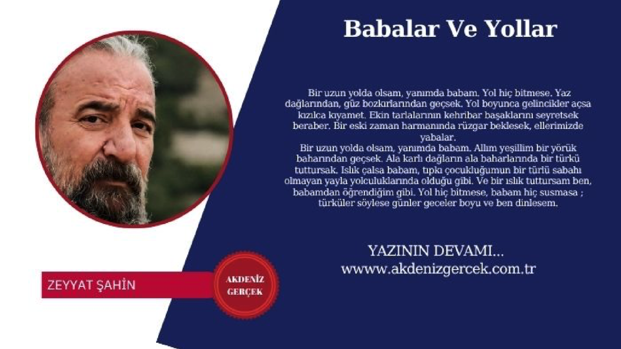 Bir uzun yolda olsam, yanımda babam. Yol hiç bitmese. Yaz dağlarından, güz bozkırlarından geçsek. Yol boyunca gelincikler açsa kızılca kıyamet. Ekin tarlalarının kehribar başaklarını seyretsek beraber. Bir eski zaman harmanında rüzgar beklesek, ellerimizde yabalar.