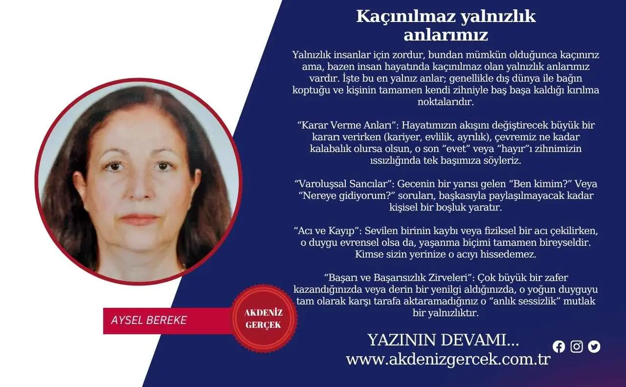 “Karar Verme Anları”: Hayatımızın akışını değiştirecek büyük bir kararı verirken (kariyer, evlilik, ayrılık), çevremiz ne kadar kalabalık olursa olsun, o son “evet” veya “hayır”ı zihnimizin ıssızlığında tek başımıza söyleriz.