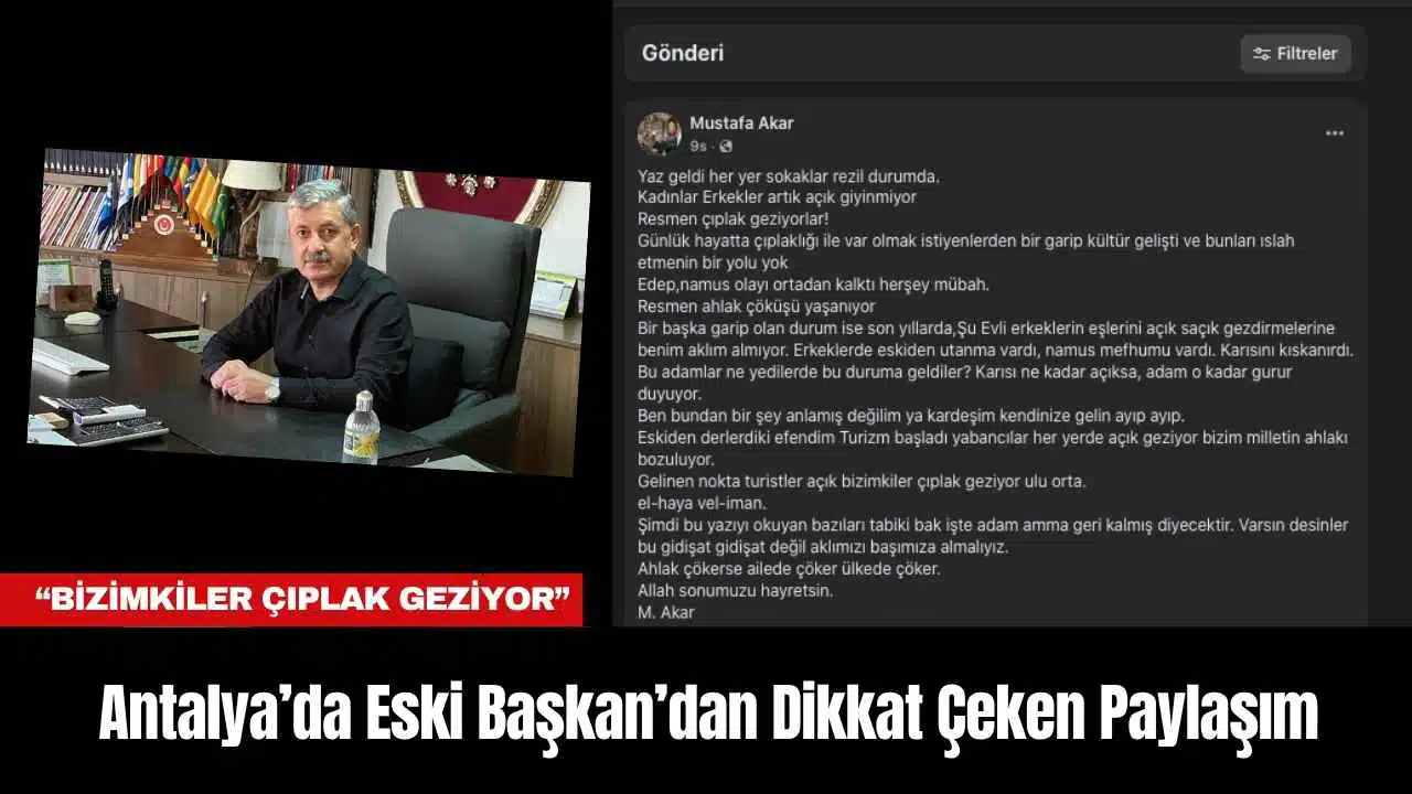 Milliyetçi Hareket Partisi (MHP) geçmiş dönem Antalya İl Başkanı Mustafa Akar’ın sosyal medya hesabından paylaştığı yazı dikkat çekti. Yazıda turistlerin açık, yurttaşların sokakta çıplak gezdiklerini dile getirdi.