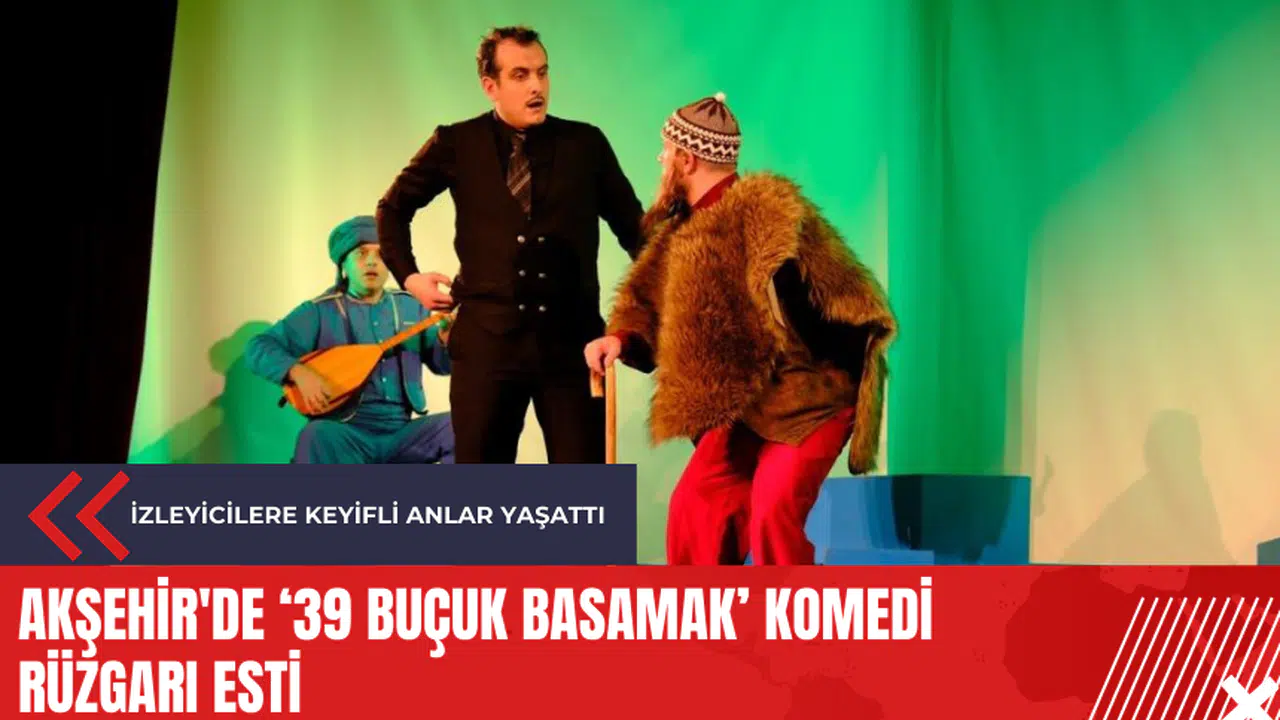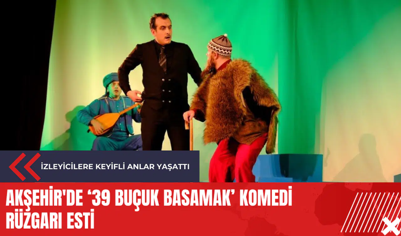Konya'nın Akşehir İlçe Belediyesi, kültür ve sanat etkinlikleri kapsamında sahneye koyduğu '39 Buçuk Basamak' adlı komedi oyunuyla Akşehirli tiyatro severleri bir araya getirdi. İskoç yazar John Buchan'ın 1915 yılında yazdığı '39 Basamak' isimli casusluk romanından esinlenen oyun, ulusal bir insan avının ana hedefi olan John'un komik maceralarını konu ediniyor.