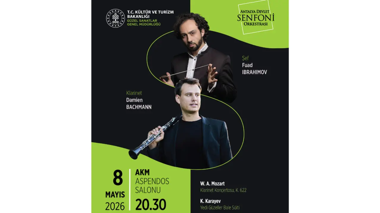 Antalya Devlet Senfoni Orkestrası, Konserleri kapsamında müzikseverlere unutulmaz bir gece hazırlıyor. Şef Fuad Ibrahimov yönetiminde sahne alacak orkestra, dünyaca ünlü klarnet sanatçısı Damien Bachmann’ı ağırlayacak. 8 Mayıs 2026 akşamı saat 20.30’da gerçekleşecek konserde, klasik müziğin seçkin eserleri Antalyalılarla buluşacak. Programın ilk bölümünde ise W. A. Mozart’ın en önemli yapıtlarından biri olarak kabul edilen “Klarnet Konçertosu (K. 622)” seslendirilecek.