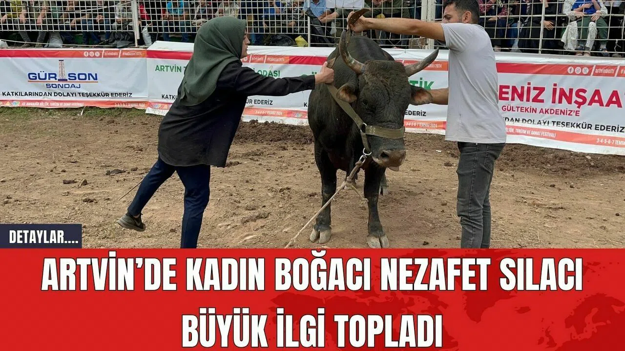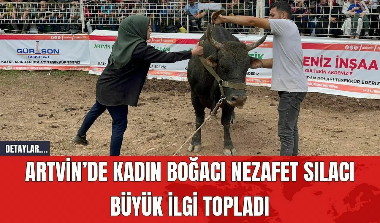 Artvin'de düzenlenen geleneksel boğa güreşi festivalinde kadın boğacı Nezafet Sılacı’nın gösterdiği cesaret ve yetenek büyük ilgi topladı.