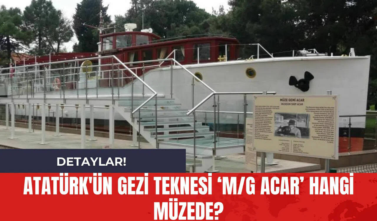 Atatürk'ün gezi teknesi olarak kullandığı 'M/G Acar', 1936-1937 yılları arasında Almanya'da inşa edilmiştir. Deniz trafiğine kapalı Kıel Kanalı'ndan geçirilerek İstanbul Dolmabahçe Sarayı önlerine getirilmiştir. Daha sonra Türk Deniz Kuvvetleri envanterine katılmıştır ve Atatürk tarafından gezinti ve Savarona yatına ulaşım için kullanılmıştır.