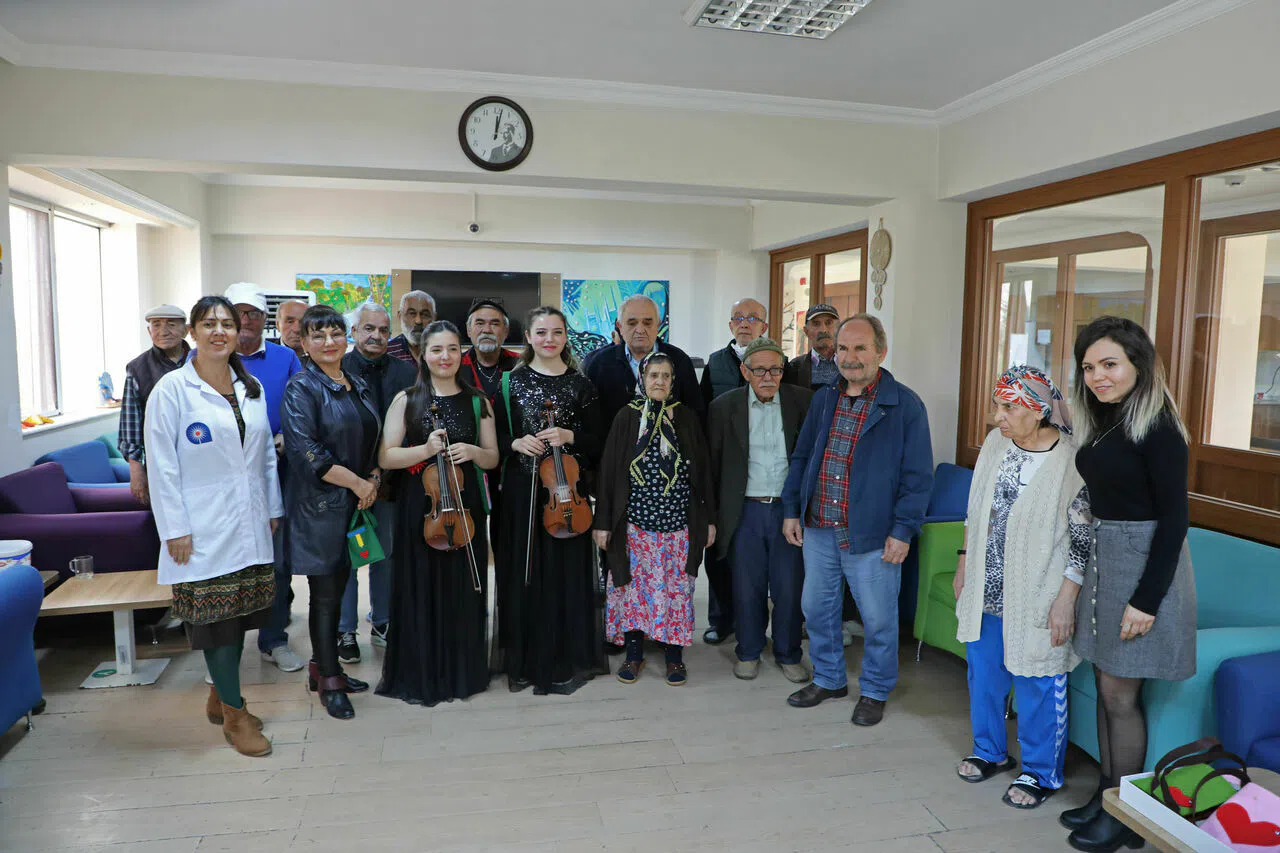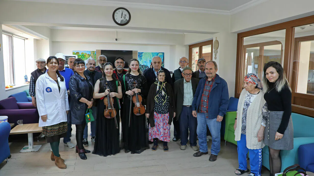 ulusal ve uluslararası yarışmalarda kazandığı birinciliklerle Antalya'nın gururu olan Elif Eroğlu ve genç müzisyen Pınar Yar yaşlı bireylere keman dinletisi sundu. Genç müzisyenler gösterdikleri performans ile yaşlı bireylerden alkış aldı. Konser sonunda yaşlı bireyler de genç müzisyenlere teşekkür ederek kendi elleriyle yaptıkları hediyeleri verdi.