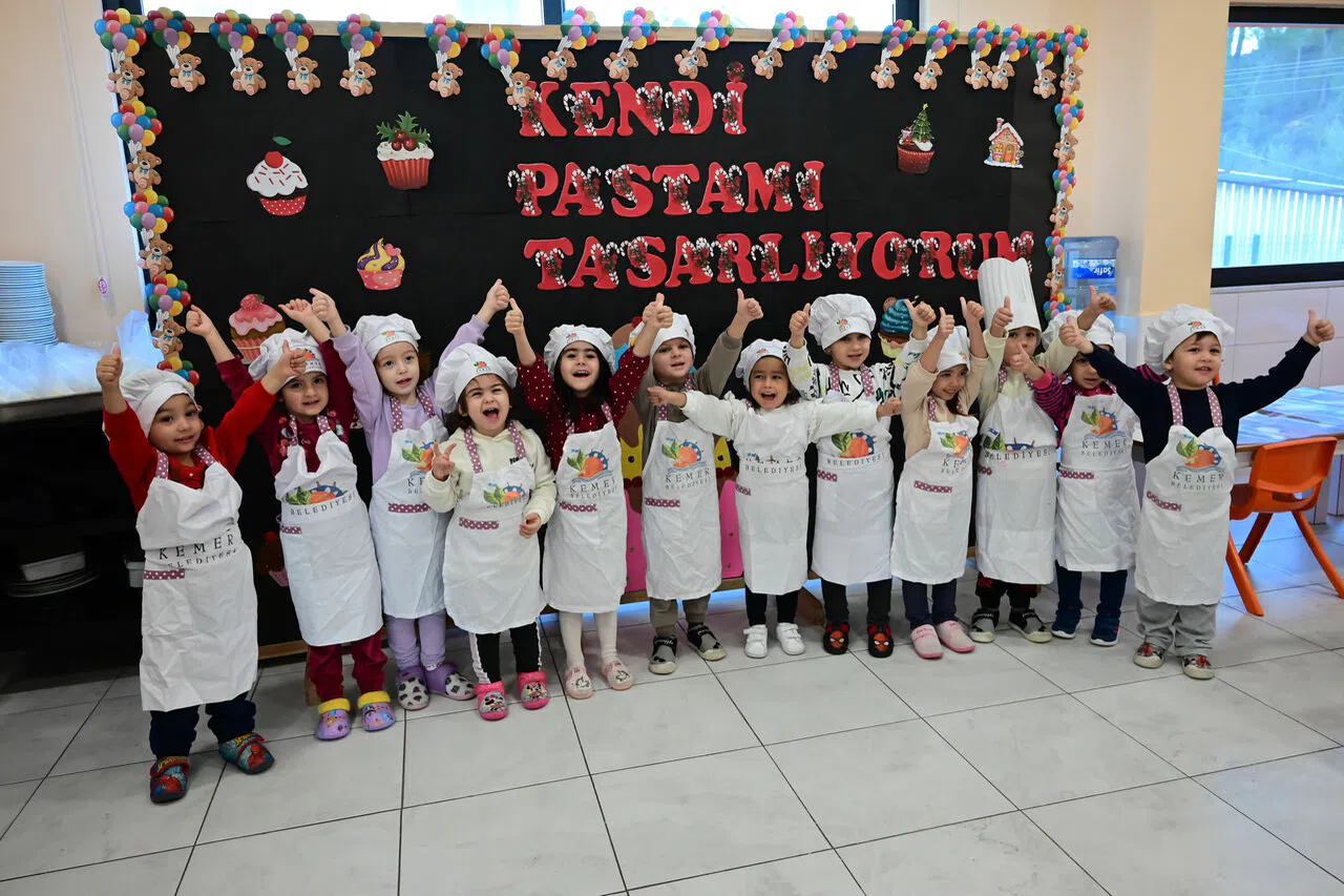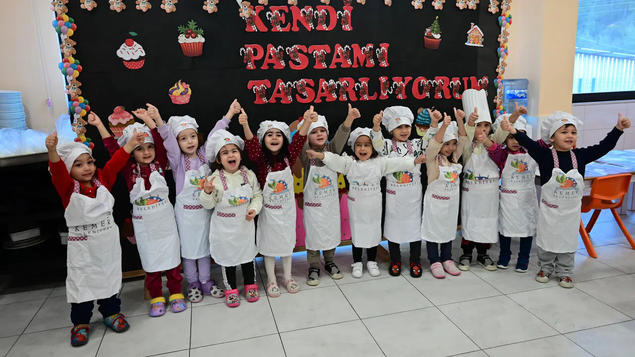 Yer tahsisini Kemer Belediyesi’nin sağladığı ve Kemer’in ilk turizmcilerinden olan Orduvar Akman ve eşi Ülker Akman tarafından yaptırılarak eğitime kazandırılan anaokulunda eğitim alan 160 öğrenci, yeni yıl kutlamaları kapsamında kendi pastalarını yaptı.