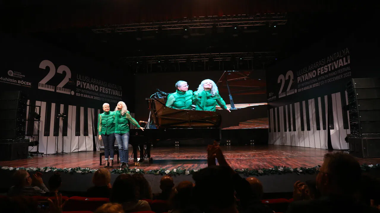 Antalya Büyükşehir Belediyesi tarafından düzenlenen 22. Uluslararası Piyano Festivali’nin son gününde sahne alan Ufuk&Bahar Dördüncü Fransız empresyonistlerinin eserlerinden oluşan konserlerinde dinleyicilere müzik ziyafeti yaşattı. Dünyaca ünlü ikili konser öncesi, festivale ev sahipliği yapan Antalya Büyükşehir Belediyesi’ne ve tüm festival ekibine teşekkür etti.