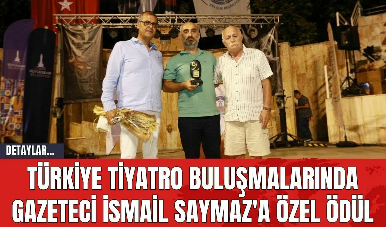 Uluslararası Türkiye Tiyatro Buluşması'nın ikinci gününde, Gazeteci İsmail Saymaz'a Eylem Şafak Aydın Dayanışma Ödülü verildi. Bu ödül, geçtiğimiz yıllarda Tiyatro Sanatçısı Orhan Aydın'ın kızı Eylem Şafak Aydın adına sunuldu ve 6 Şubat Depremi'ne dikkat çekti.