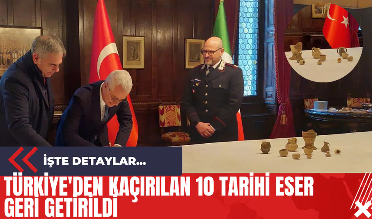 Türkiye'nin kültürel mirası, yasadışı yollarla yurt dışına çıkarılan 10 pişmiş toprak eser, İtalyan kültür polisinin titiz operasyonuyla Floransa'da ele geçirildi. Yaşanan gelişmeyi aktaran Kültür ve Turizm Bakanı Mehmet Nuri Ersoy, sosyal medya üzerinden yaptığı açıklamada, eserlerin ülkelerine iade edilmesine ilişkin önemli bir adımın atıldığını belirtti.