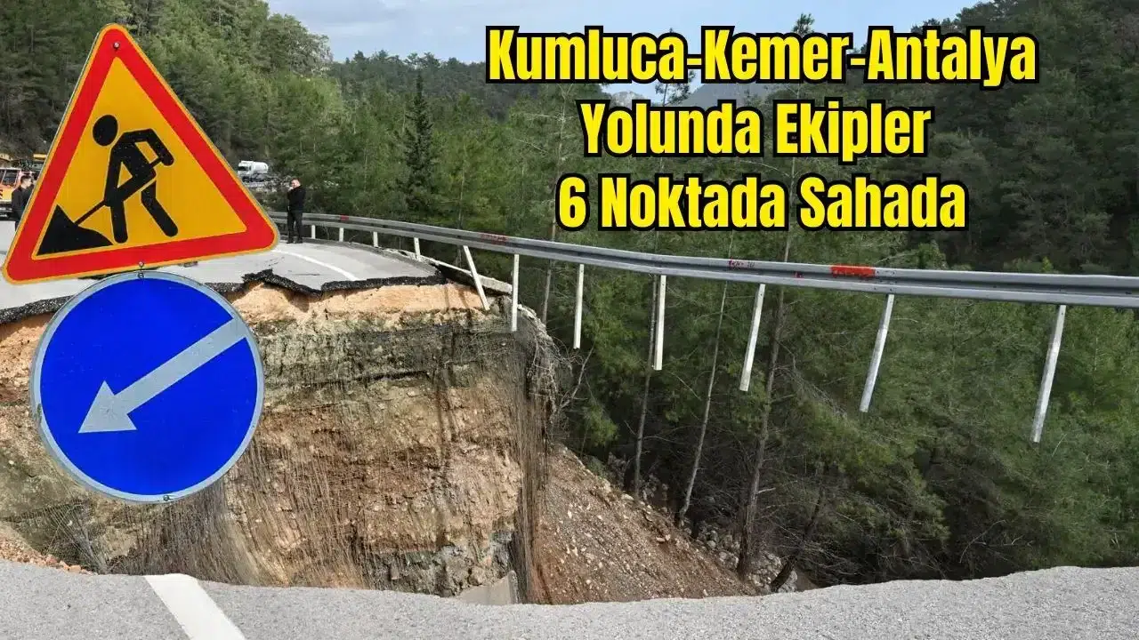 Karayolları Genel Müdürlüğü'nün güzergah haritasındaki yol çalışmaları duyurularına göre, Kumluca-Kemer-Antalya yolunun 2.-4., 12-13., 15-16., 25-26., 31-32. ve 34-37. kilometrelerinde 6 farklı ekip sahaya indi. Yolun büyük bölümünde sürücüler tek şeritten gidiş–geliş yapmak zorunda kalıyor.