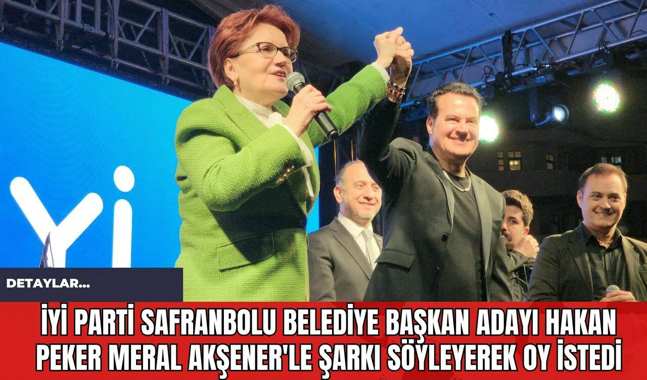 İYİ Parti lideri Meral Akşener, Safranbolu Belediye Başkan Adayı Hakan Peker'in organize ettiği konsere katıldı. Misak-ı Milli Meydanı'nda gerçekleştirilen etkinlikte, Hakan Peker'in seslendirdiği "Bir Efsane" şarkısına eşlik eden Akşener, Peker'e destek isteyerek kentten ayrıldı.