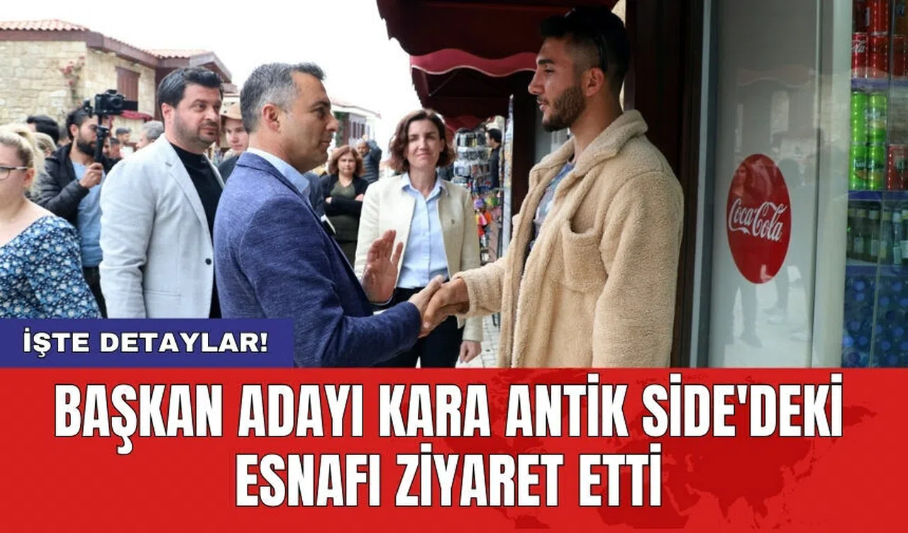 Cumhuriyet Halk Partisi (CHP) Manavgat Belediye Başkan Adayı Niyazi Nefi Kara, her yıl milyonlarca yerli ve yabancı turistin akın ettiği dünyaca ünlü Antik Side'de esnafları ziyaret etti. Kara'nın Antik Side'deki ziyaretine eşi Hacer Ceyhan Kara, CHP Manavgat İlçe Başkanı Oykun Başar, CHP Antalya Milletvekilleri Aliye Coşar ve Sururi Çorabatır ile belediye meclis üyesi adayları da eşlik etti.