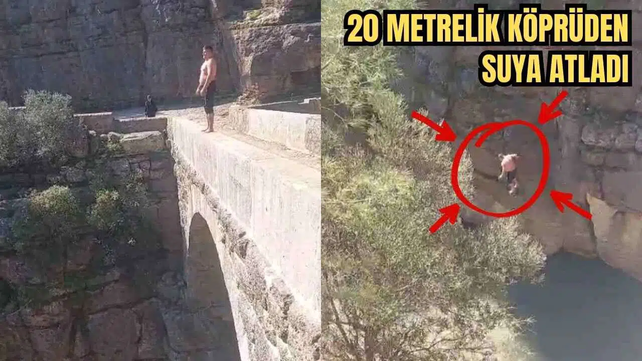 Antalya’nın Manavgat ilçesine bağlı Beşkonak Mahallesi’nde bulunan tarihi Oluk Köprü, bu kez adrenalin dolu görüntülerle gündeme geldi. Yaklaşık 20 metre yüksekliğe çıkan Mustafa Ünal, köprüden soğuk suya atladı.