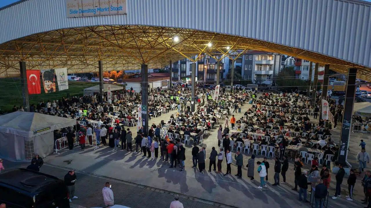 Antalya’nın Manavgat ilçesi Side Mahallesi Kapalı Pazar Yeri’nde kurulan dev iftar sofrası, her kesimden binlerce vatandaşı bir araya getirdi. Okunan dualar eşliğinde açılan oruçlar, komşuluk bağlarını ve birlikteliği pekiştirdi.