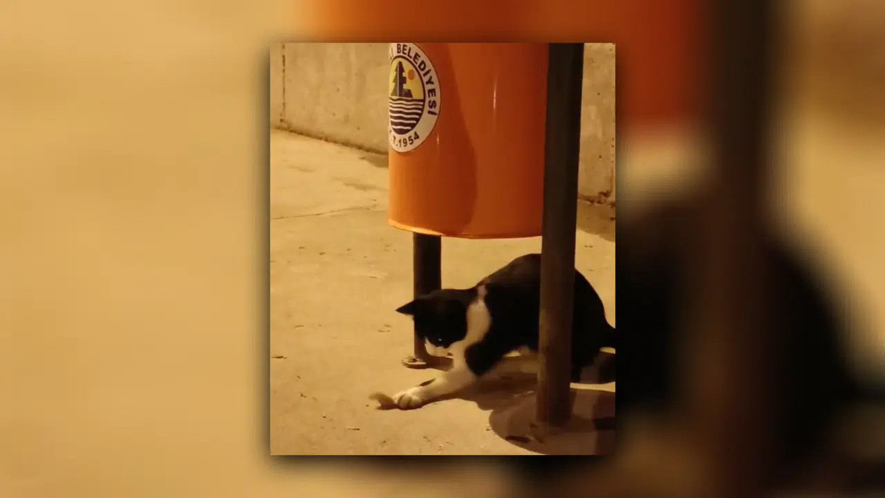 Mersin Erdemli'de bir kedinin fare ile oynarken cep telefonu kamerasına yansıyan bu sevimli sahne, izleyenlerde gülümsemeye neden olmuş olmalı.