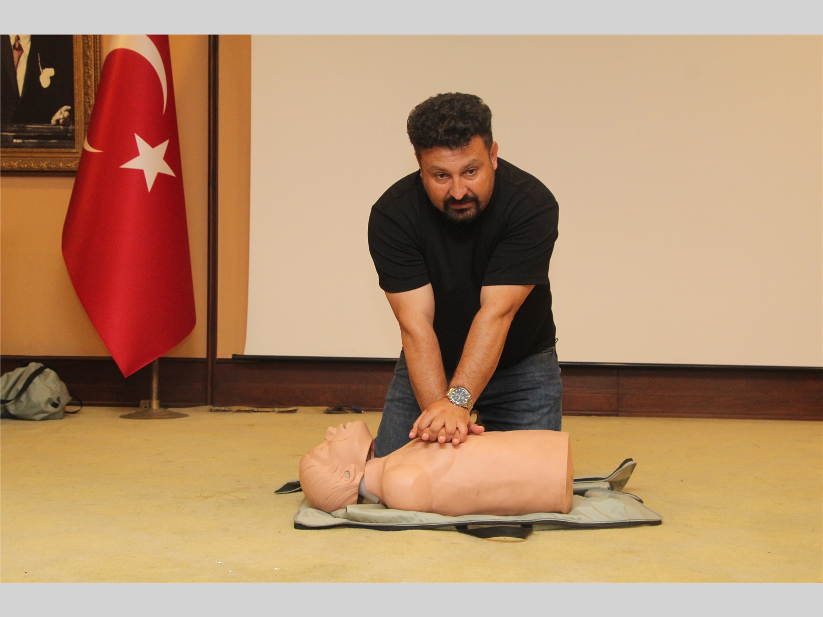 İlk yardım eğitmenleri Halil Gamsız ve Süleyman Sırrı Kırtıl tarafından verilen eğitimde; genel ilkyardım bilgileri, olay yeri ve hasta/yaralı değerlendirmesi, temel yaşam desteği, kanama ve yaralanmalar, yanık, sıcak çarpması, donuk, kırık, çıkık, burkulma ve bilinç bozukluklarında ilk yardım uygulamaları ele alındı.