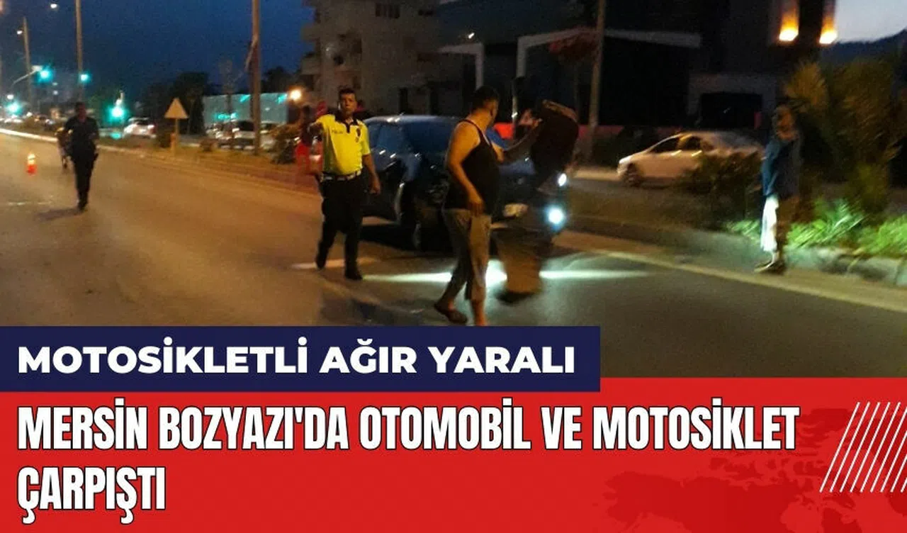 Mersin'in Bozyazı ilçesinde otomobil ile motosikletin çarpışması sonucu 1 kişi ağır yaralandı. Edinilen bilgiye göre, henüz ismi belirlenemeyen kadın sürücünün kullandığı 06 EIL 365 plakalı otomobil ile Sertaç Taş (23) idaresindeki motosiklet, Denizciler Mahallesi Alparslan Türkeş Bulvarı'nda çarpıştı.