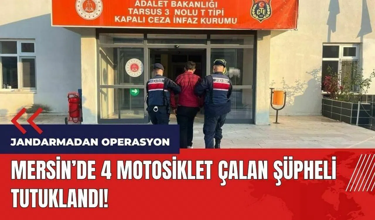 Mersin'in Tarsus ilçesinde, farklı adreslerden gerçekleştirilen 4 motosiklet hırsızlığı olayının ardından jandarma ekipleri tarafından gerçekleştirilen başarılı bir operasyon sonucunda şüpheli yakalanarak tutuklandı.