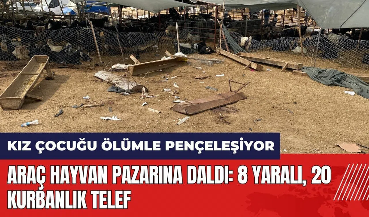 Mersin'de bir otomobilin kurbanlık hayvan pazarına girmesi sonucu yaşanan kaza, 1 kız çocuğu ağır olmak üzere 8 kişinin yaralanmasına ve 20 küçükbaş hayvanın telef olmasına yol açtı.