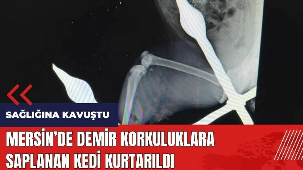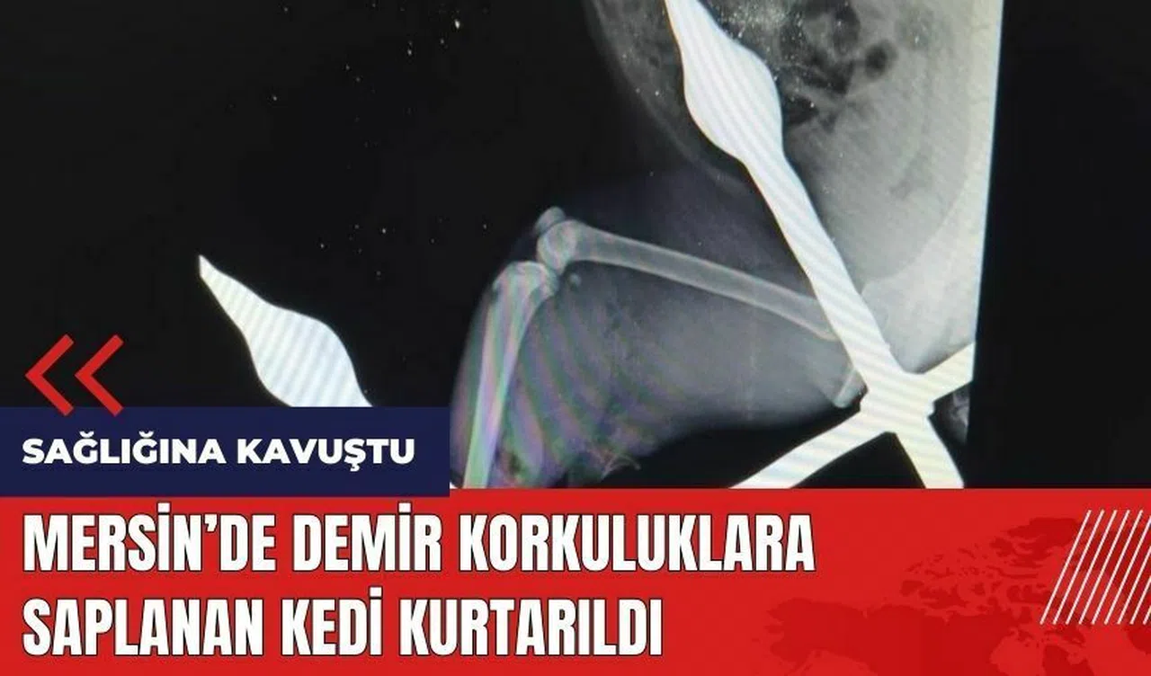 Mersin'de bir apartmanın demir korkuluklarına sıkışan ve itfaiye ekiplerinin hızlı müdahalesiyle kurtarılan kedi, tedavisi tamamlandıktan sonra sağlığına kavuştu.