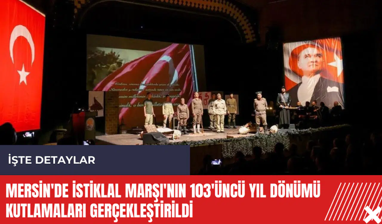Mersin'de, İstiklal Marşı'nın kabulünün 103. yıl dönümü ve Mehmet Akif Ersoy'u Anma Günü, Kültür Merkezi'nde düzenlenen etkinliklerle kutlandı. Programa, Mersin Valisi Ali Hamza Pehlivan'ın da katılımıyla anlam ve önem yüklendi.