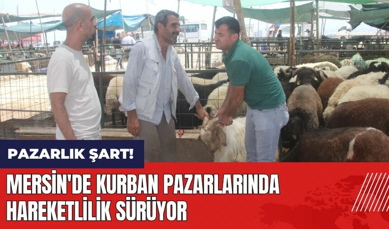 Mersin'de Kurban Bayramı'nın ilk günü pazarlarda hareketlilik devam ediyor. Vatandaşlar uygun fiyata kurbanlık ararken, besiciler de emeklerinin karşılığını almak için sıkı pazarlıklar yapıyor.