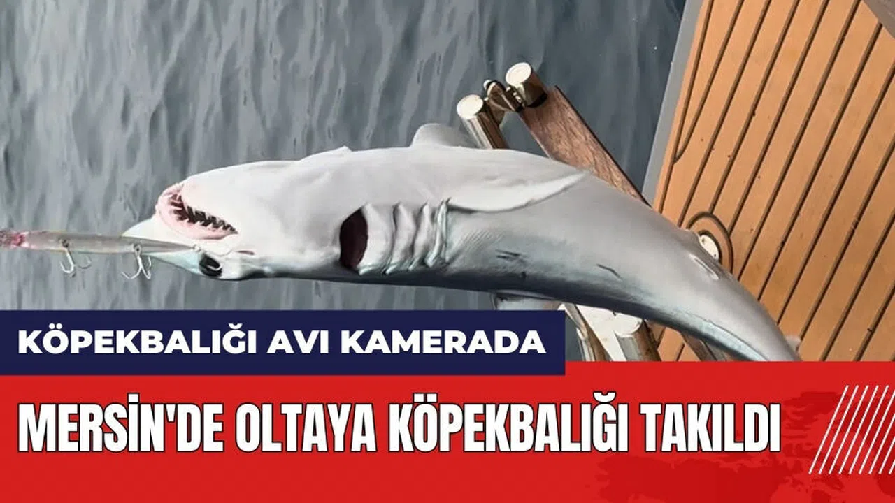 Mersin'de oltaya köpekbalığı takıldı! Köpekbalığı avı kamerada