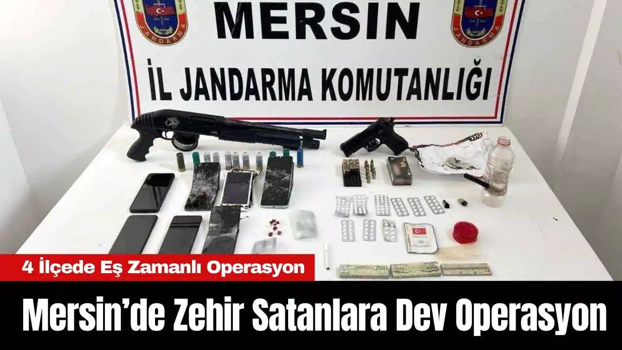 Mersin’in Silifke, Anamur, Çamlıyayla ve Erdemli ilçelerinde düzenlenen operasyonda 10 uyuşturucu taciri gözaltına alındı. Operasyonda çeşitli miktarda uyuşturucu madde ve silahlar ele geçirildi.