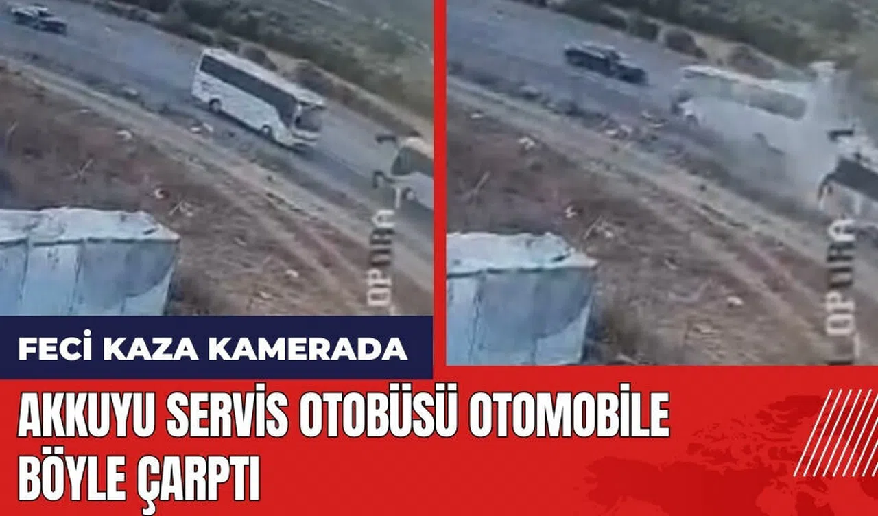 Mersin'deki feci kaza kamerada! Akkuyu servis otobüsü otomobile böyle çarptı