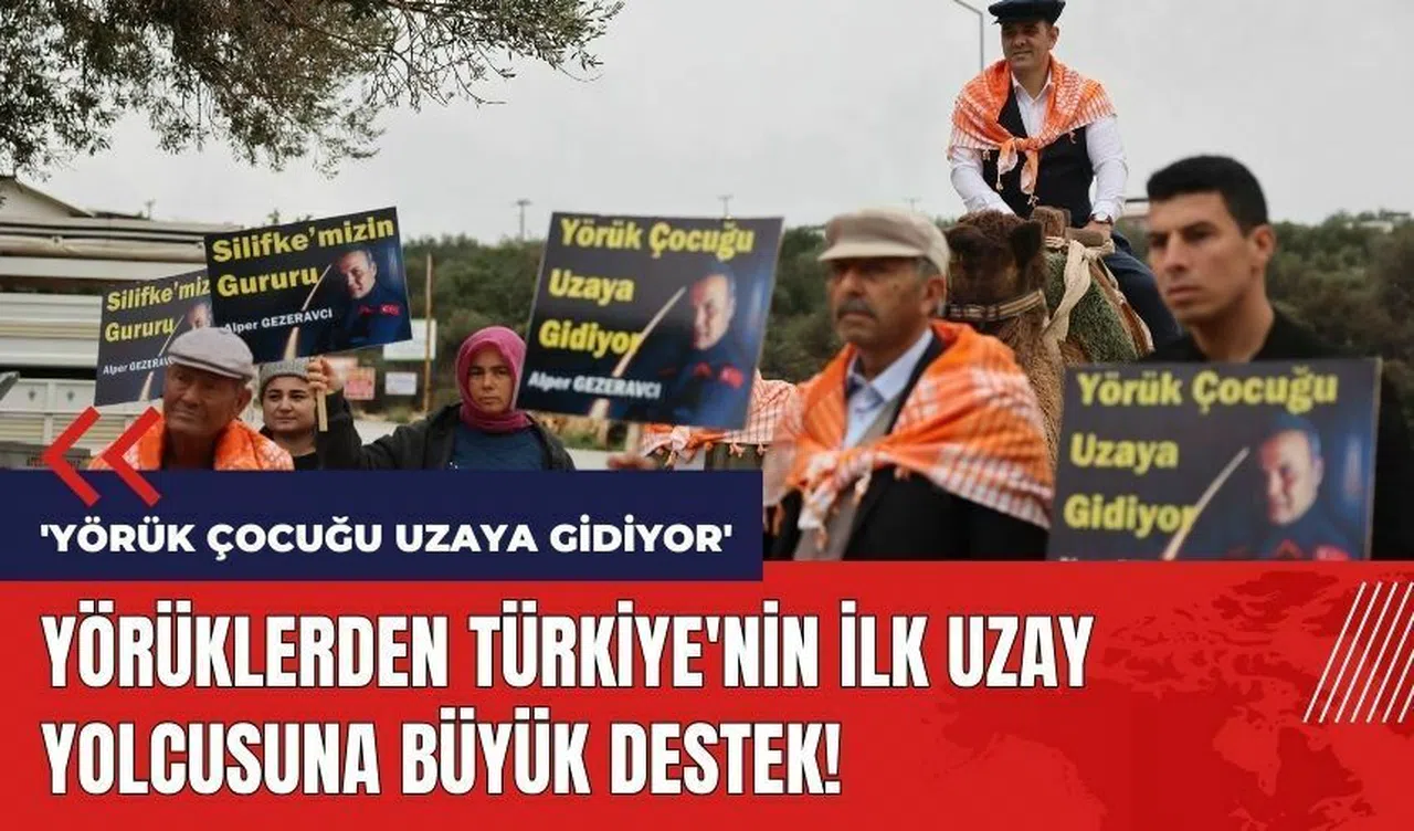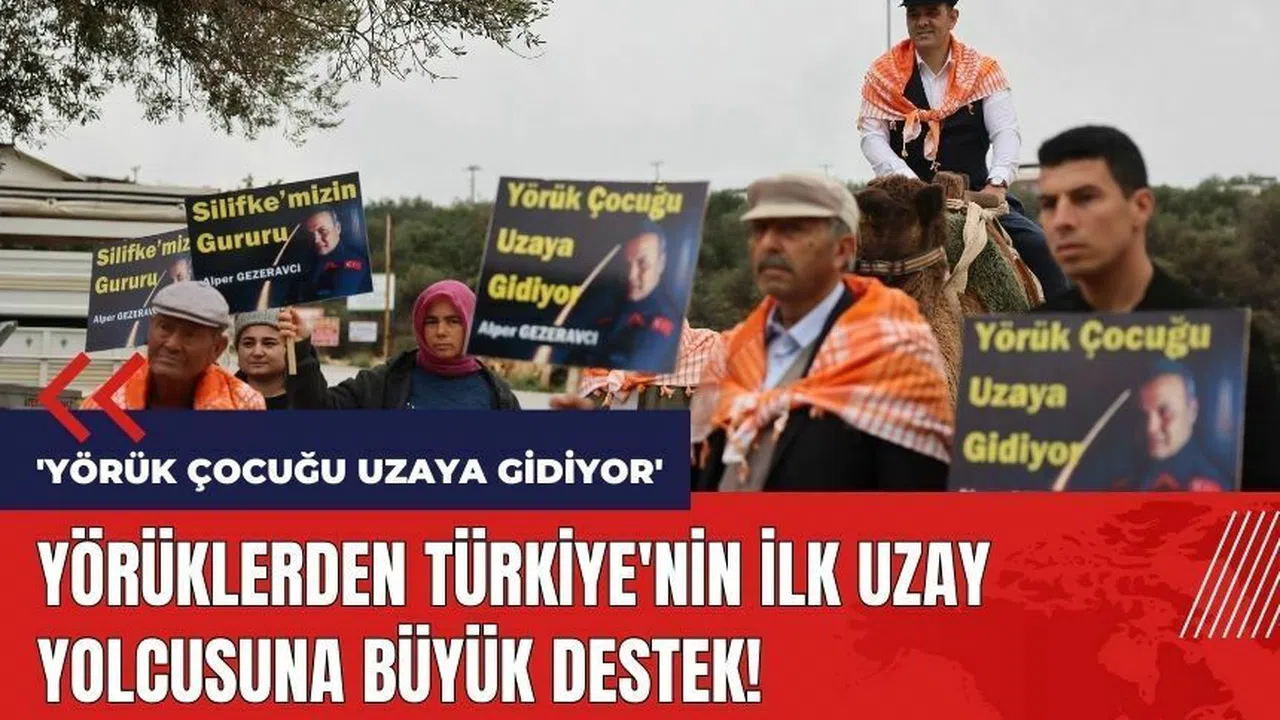 Mersin'in Silifke ilçesinde Yörükler, Türkiye'nin ilk astronotu Alper Gezeravcı'nın uzaya fırlatılmasına saatler kala destek yürüyüşü düzenledi. Deve ve eşek sırtında ellerinde dövizlerle bir araya gelen Yörükler, Narlıkuyu Mahallesi'nde uğurlama programı gerçekleştirdi.