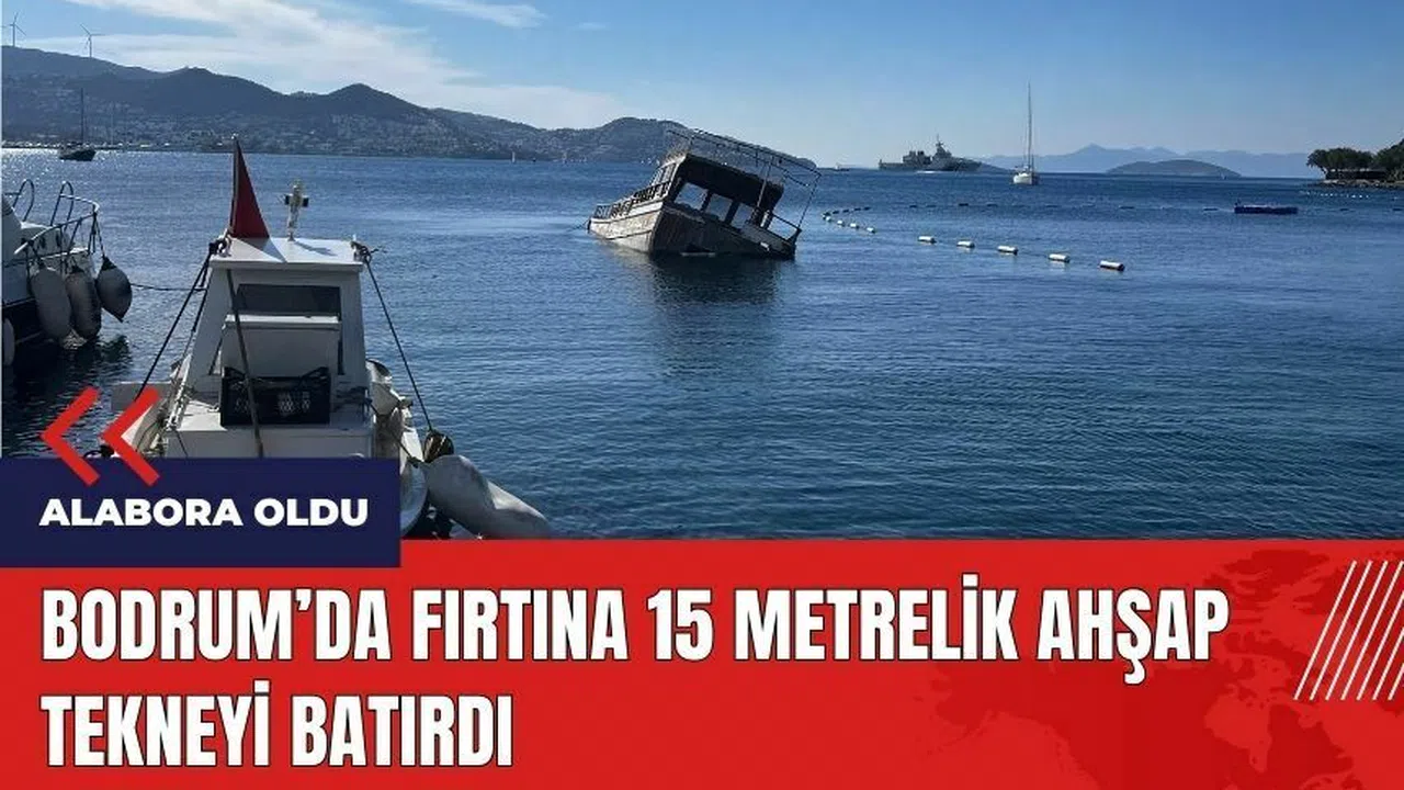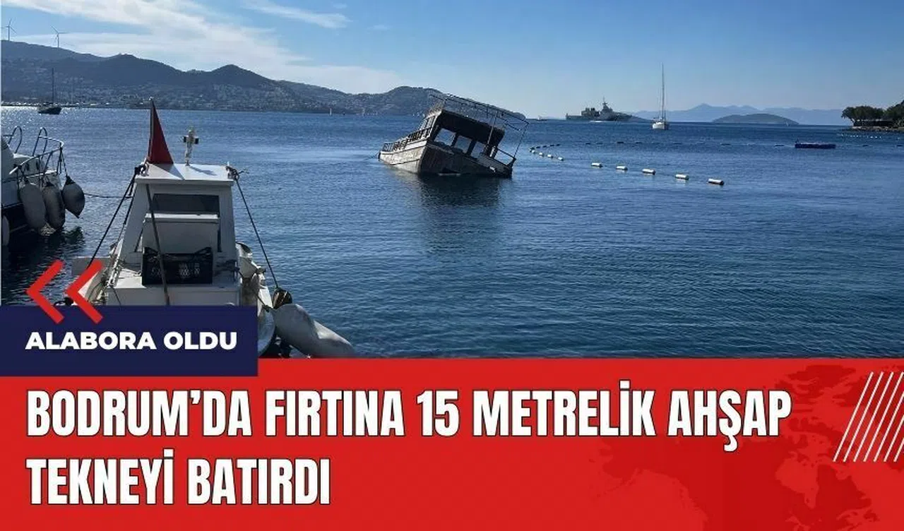 Muğla'nın Bodrum ilçesinde şiddetli fırtına, 15 metrelik ahşap teknenin batmasına neden oldu.