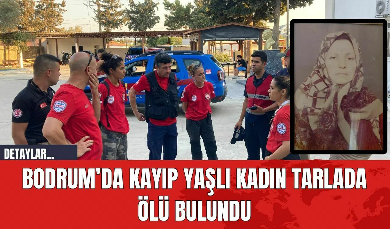 Muğla'nın Bodrum ilçesinde, yaklaşık 10 gündür kayıp olan yaşlı kadın Gülfidan Öztaşkın (88), bir tarlada ölü halde bulundu.