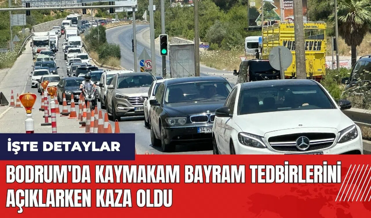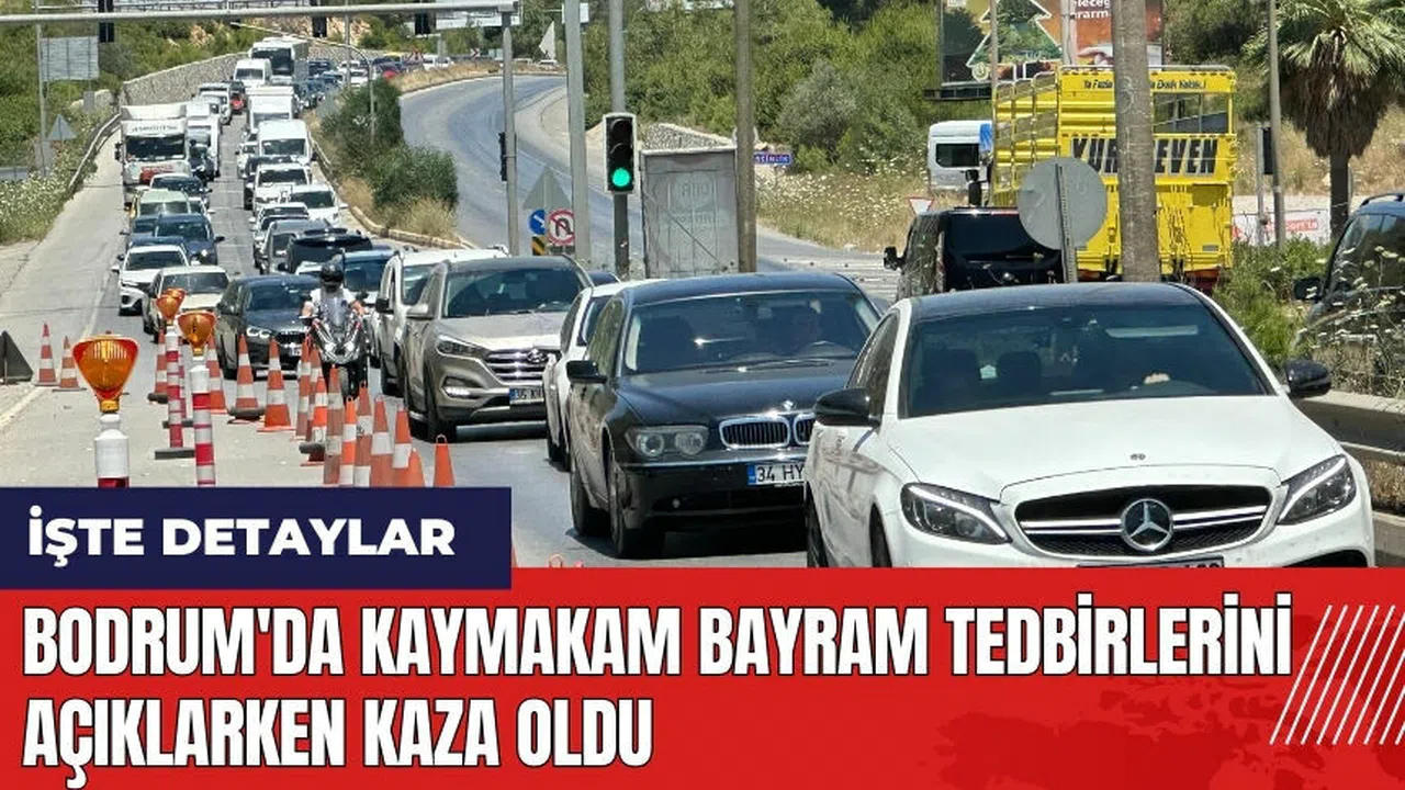 Kurban Bayramı'nda tatilciler Bodrum'a akın ederken, ekiplerin bölgede aldığı tedbirleri artırıldı. Bodrum Kaymakamı Mustafa Çit güvenlik önlemlerini açıklarken trafik kazası meydana geldi.