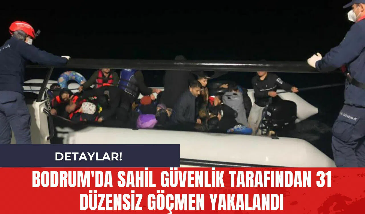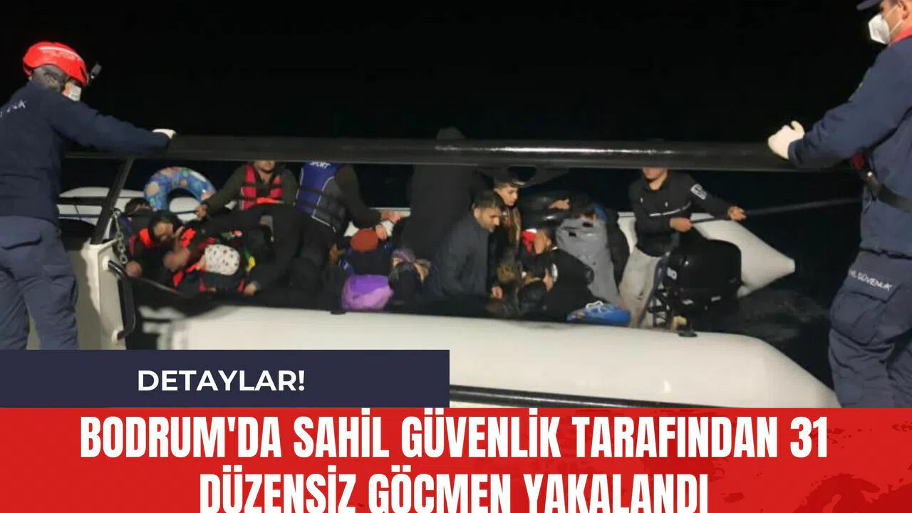 Bodrum açıklarında Sahil Güvenlik tarafından düzenlenen operasyonda 31 düzensiz göçmen yakalandı.