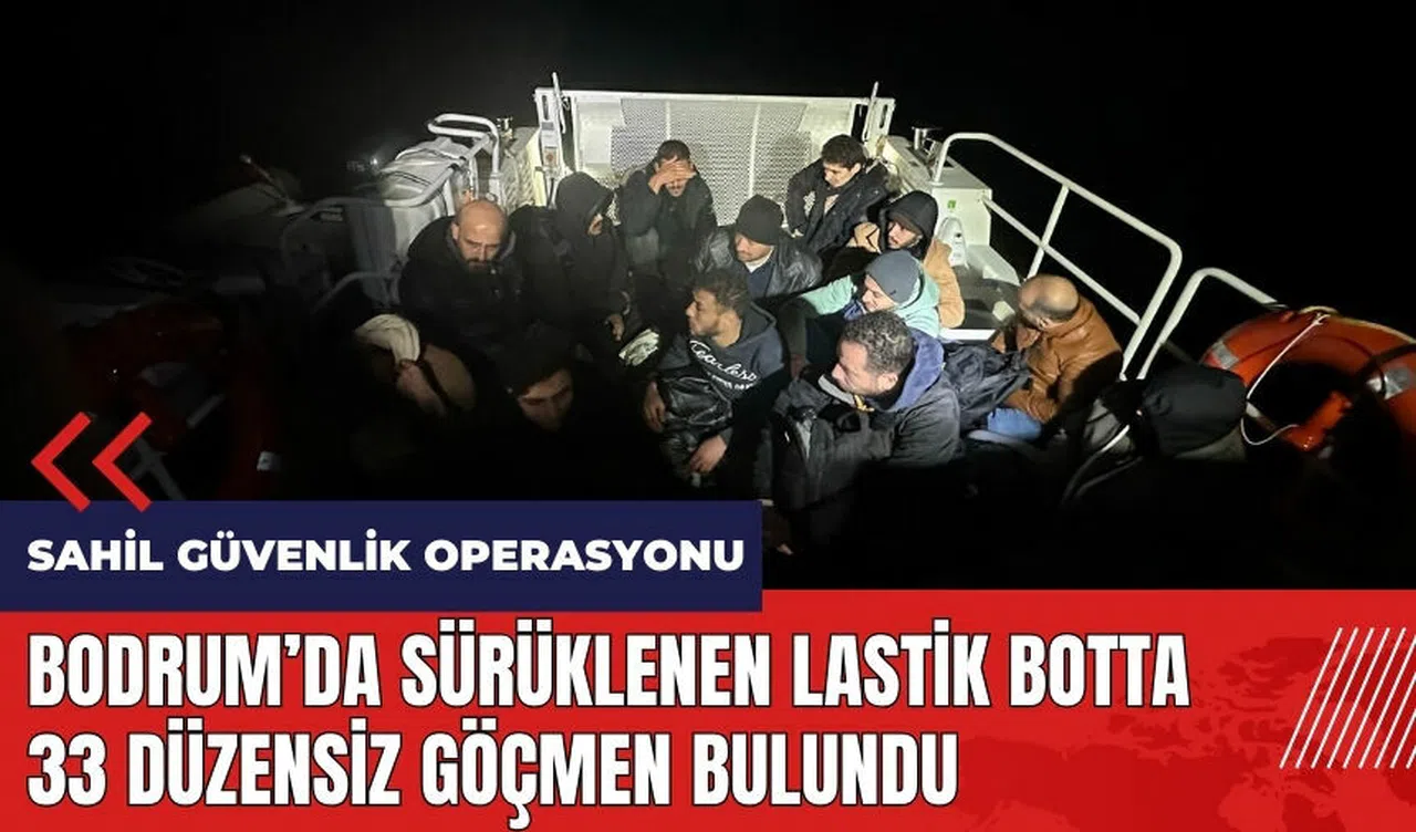 Bodrum'da görevli Sahil Güvenlik Mobil Radarı (MORAD-13) tarafından lastik botta düzensiz göçmen olduğu tespit edilince, Sahil Güvenlik Botu (KB-35) hemen bölgeye hareket etti. Durdurulan lastik botta bulunan 2'si çocuk toplam 33 düzensiz göçmen yakalandı.