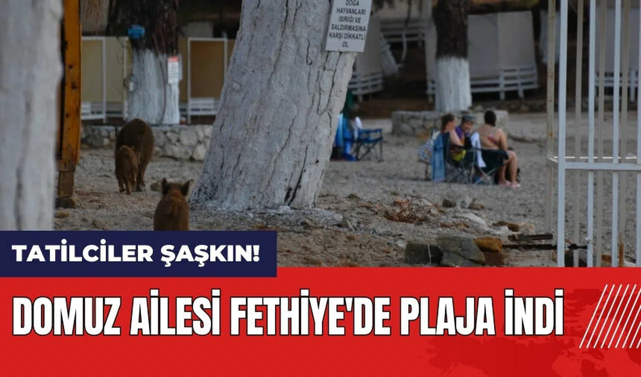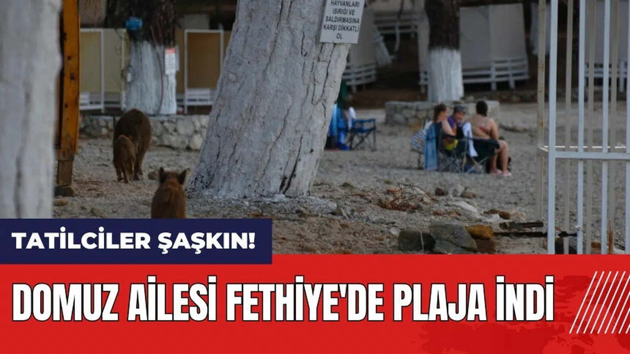 Muğla'nın Fethiye ilçesinde, bir domuz yavruları ile birlikte ormanlık alandan plaja indi. Tatilciler, plajda gördükleri bu manzara karşısında büyük şaşkınlık yaşadı.