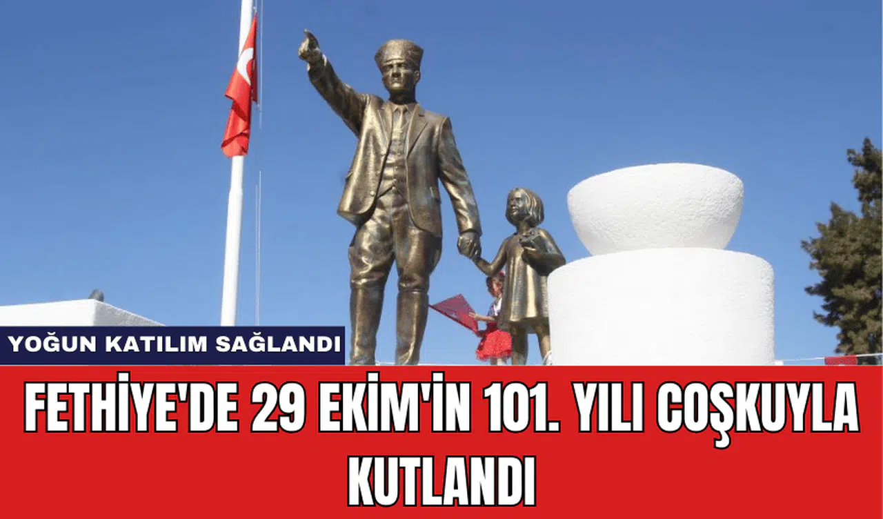 29 Ekim Cumhuriyet Bayramı'nın 101. yıl dönümü kutlamaları kapsamında Fethiye Beşkaza Meydanı'nda yapılan çelenk sunma törenine, Fethiye Kaymakamı İsmail Hakkı Ertaş, Garnizon Komutanı Dz. Alb. Emre Ahmet İnal, Fethiye Cumhuriyet Başsavcısı Günşafak Karartı, İlçe Emniyet Müdürü Muzaffer Yüceur, İlçe Sahil Güvenlik Komutanı Burak Akanpınar, ve Muharip Gaziler ve Şehit Aileleri Dayanışma Derneği Başkanı Namık Ünal ile birlikte çok sayıda vatandaş, daire amirleri, siyasi partilerin ilçe temsilcileri, STK başkanları, öğretmenler ve öğrenciler katıldı.