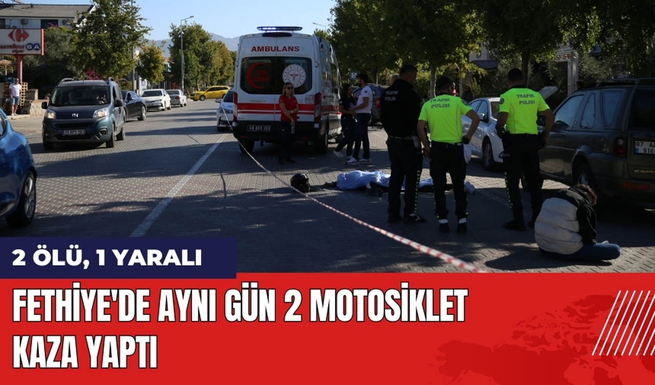 Muğla'nın Fethiye ilçesinde aynı gün meydana gelen iki ayrı motosiklet kazasında 2 kişi yaşamını yitirdi, 1 kişi de yaralandı.
