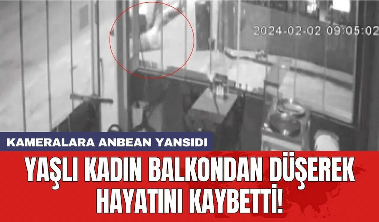 Kadının balkondan düşme anı güvenlik kamerası tarafından saniye saniye görüntülendi.