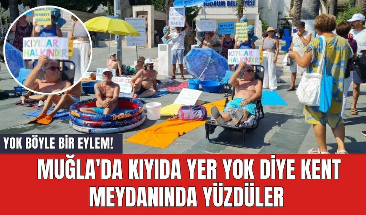 Kıyı işgallerine karşı her hafta ilçenin farklı bir noktasında eylem yapan Bodrum Özgür Kıyılar İnisiyatifi, bu kez seslerini yetkililere daha iyi duyurabilmek için Bodrum Belediye Meydanı’nda bir araya geldi. Şemsiyelerini meydana açıp havlularını yere seren eylemciler, “Denize Erişim Herkesin Hakkı”, “Kıyılar Kimsenin Malı Değildir”, “Elini Çek, Kıyı Herkesin Hakkıdır” yazılı dövizler açıp sloganlar attılar. Kimileri de şişme havuzu ve leğenle eyleme katıldı. Eylemciler, Belediye Başkanı Tamer Mandalinci’ye de çağrıda bulunarak “Başkan Buraya” sloganları attı. Eylemciler, meydandan geçen yerli ve yabancı turistlerin de dikkatini çekti. Eylemi dikkatle takip eden yabancı turistler, ne olup bittiğini anlamaya çalıştı.