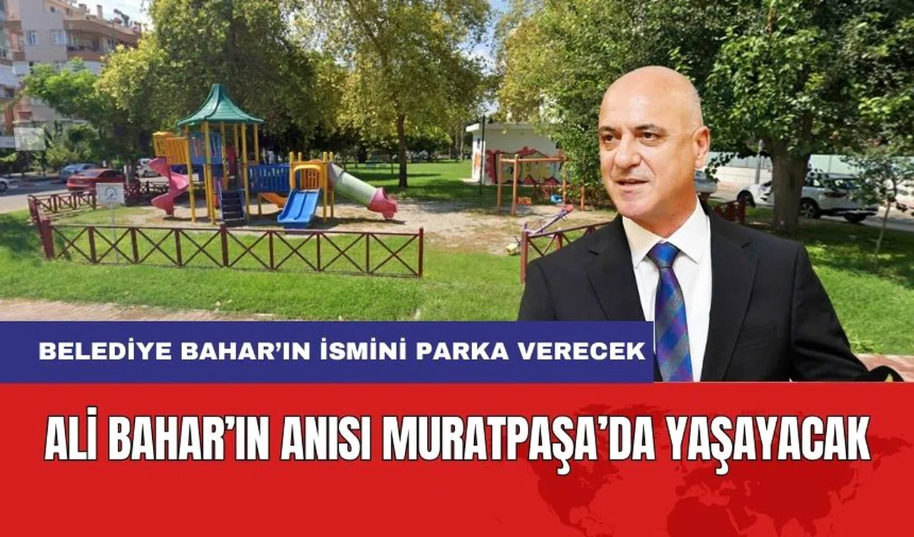 19 Temmuz 2024 tarihinde Kemer ilçesinde yaşadığı tekne kazasında hayatını kaybeden merhum ATSO Başkanı Ali Bahar’ın ismi bir parkta yaşatılacak. Yeşilbahçe Mahallesi’nde bulunan 1456 ve 1482 sokaklarının kesişiminde yer alan parka Ali Bahar isminin verilmesi Muratpaşa Belediye Meclisi’nde görüşülecek. İlgili maddenin oybirliği ile kabul edilmesi bekleniyor.
