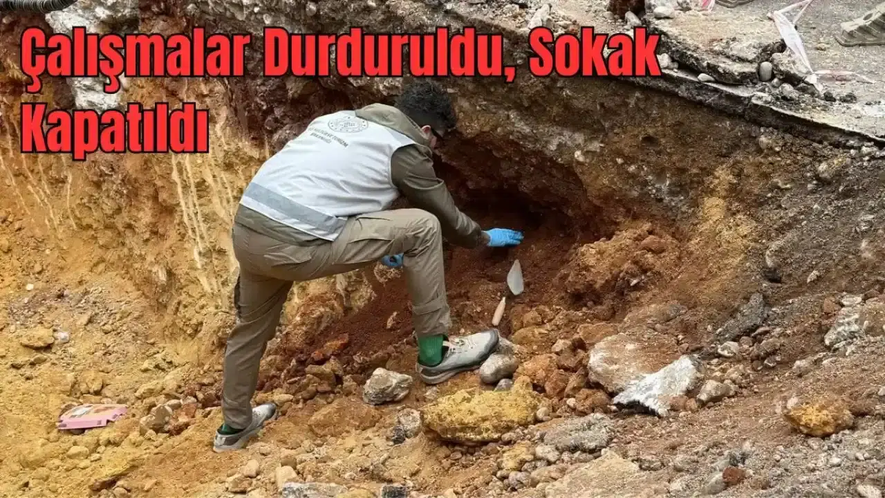 Antalya’nın Muratpaşa ilçesi Kızılsaray Mahallesi’nde yürütülen altyapı çalışmaları, beklenmedik bir bulguyla durduruldu.
