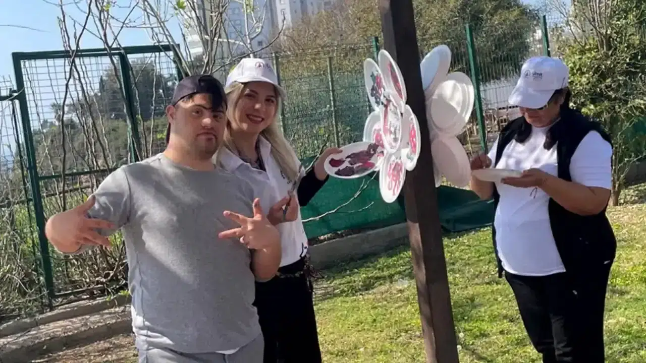 Etkinliğin en dikkat çeken bölümü ise düzenlenen tabak boyama atölyesi oldu. Down sendromlu bireylerin hayal güçlerini yansıttığı renkli tabaklar, bir araya getirilerek dev çiçek figürlerine dönüştürüldü. Sanatla terapinin harmanlandığı bu özgün çalışmalar, Engelsiz Kafe’nin bahçesine yerleştirilerek kalıcı birer hatıraya dönüştü.