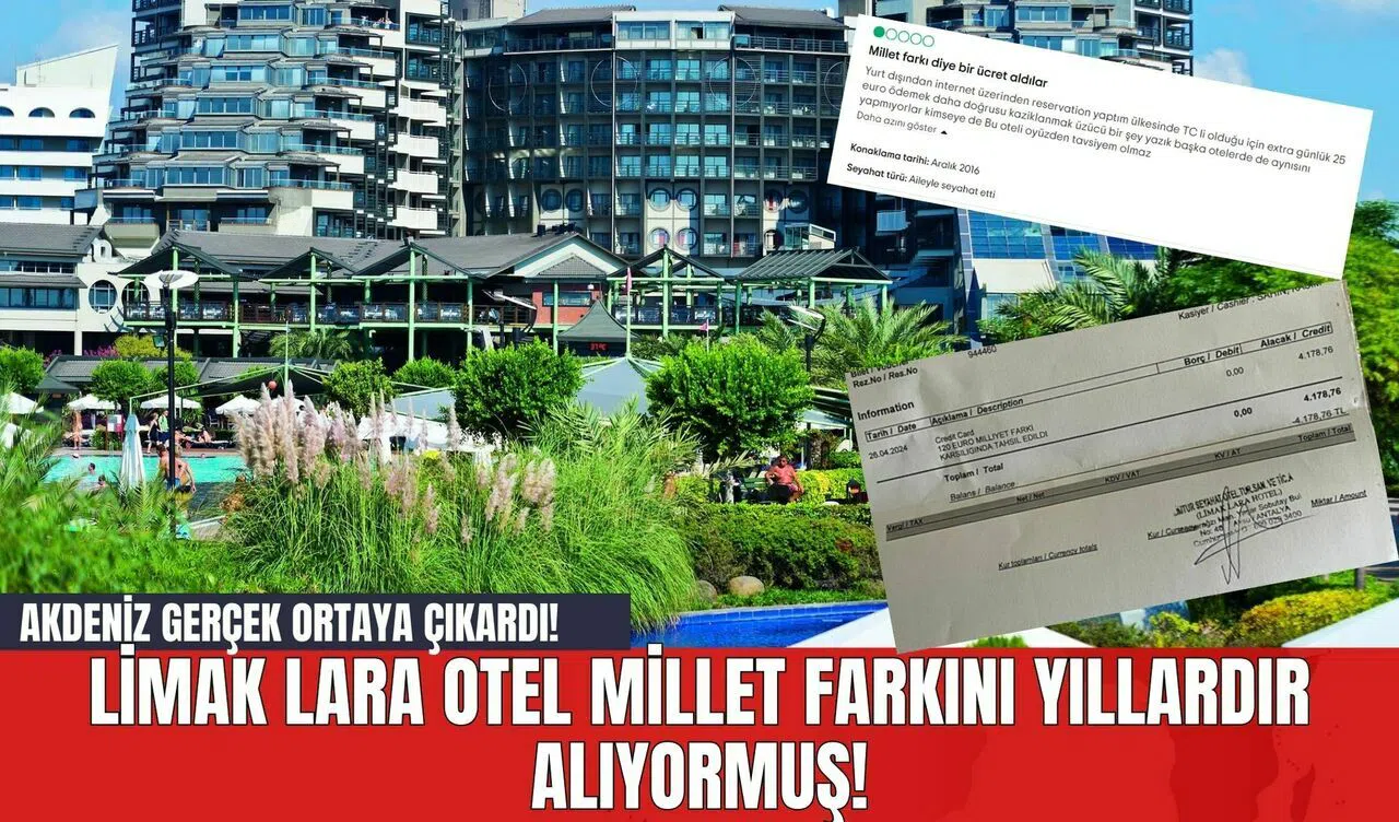 Özür dileyen ve böyle bir şey olmadığını dile getiren otelin milliyet farkının yıllarca alındığı Akdeniz Gerçeğin incelemeleriyle ortaya çıktı. Tripadvisor adlı internet sitesinden otelin hakkında yapılmış eski yorumlar incelendiğinde 2016 yılında yapılan bir yorum Lara Limak Otel'in bunu yıllarca yaptığını ve kabul ettiğini ortaya çıkardı. Yorumda, "Millet farkı diye bir ücret aldılar" başlığıyla Yurt dışından internet üzerinden reservation yaptım ülkesinde Türk olduğum için extra günlük 25 euro ödemek daha doğrusu kazıklanmak üzücü bir şey yazık başka otelerde de aynısını yapmıyorlar kimseye de Bu oteli oyüzden tavsiyem olmaz" ifadeleri kullandı.