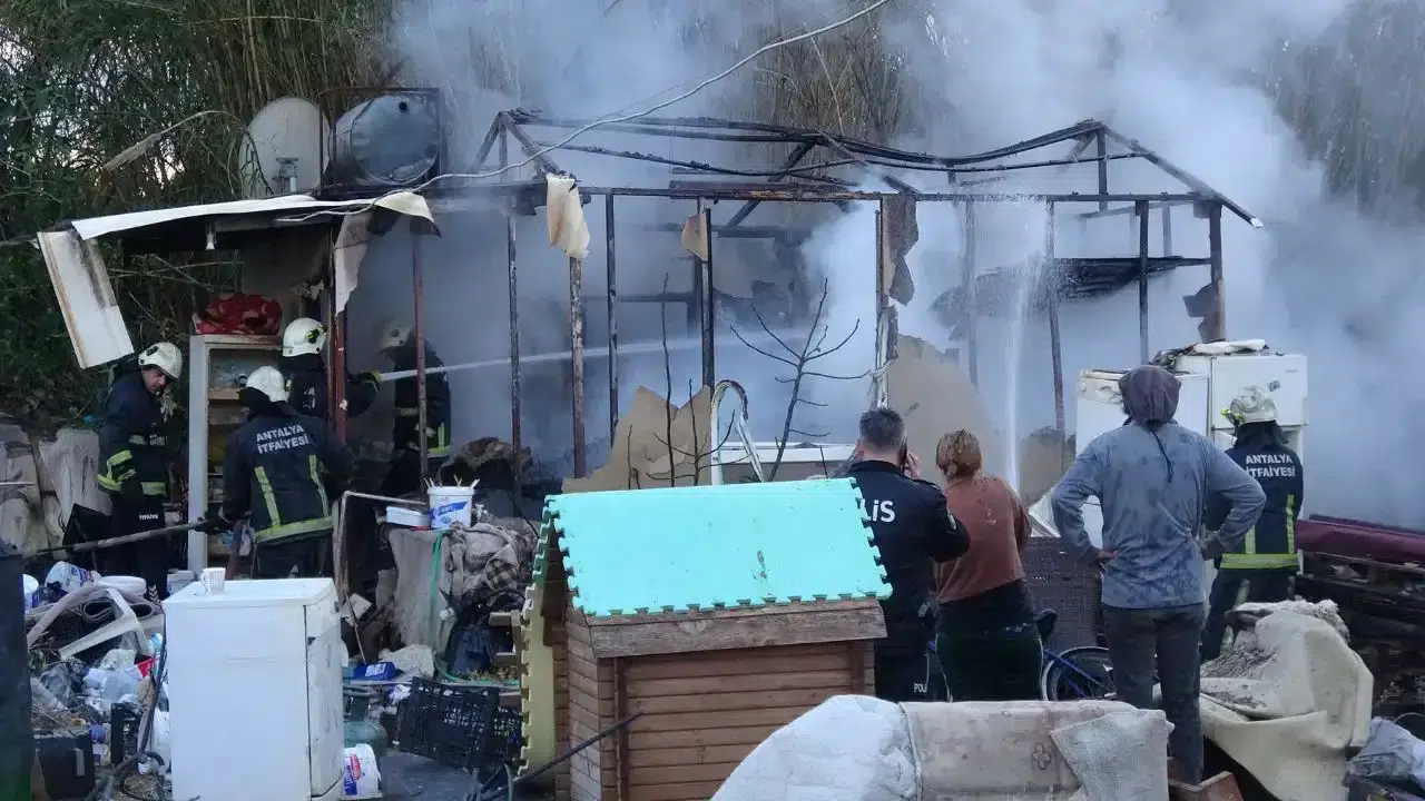 Muratpaşa’da Konteyner Evde Panik Anları! Köpek Dumandan Etkilendi