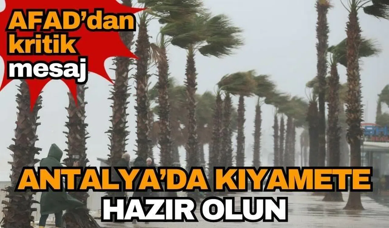 Antalya’ya sarı uyarı veren Antalya Meteoroloji Müdürlüğü şu açıklamayı yaptı: “Yapılan son değerlendirmelere göre: Rüzgarın; yarın (Cumartesi) sabah saatlerinden itibaren kuzeybatı kesimlerden başlamak üzere, zamanla Marmara, Ege, Batı Akdeniz, İç Anadolu, Karadeniz ve Doğu Anadolu’nun kuzeyinde kuvvetli ve yer yer fırtına (40-70 km/saat), Orta ve Doğu Karadeniz’in iç kesimlerinde kuvvetli fırtına (80 km/saat), 26.11.2023 (Pazar) günü etkisini artırarak kuvvetli fırtına (70-90 km/saat) ve yer yer tam fırtına (100 km/saat ve üzeri) şeklinde eseceği tahmin ediliyor. Genel olarak güney yönlerden, Pazar günü sabah saatlerinden itibaren Marmara’nın kuzeyi ile zamanla yurdun kuzey kesimlerinde batı ve kuzeybatıdan esmesi beklenen kuvvetli rüzgar ve fırtınanın akşam saatlerinden sonra etkisini kaybetmesi bekleniyor. Muhtemel çatı uçması, ağaç ve direk devrilmesi, soba ve baca gazı kaynaklı zehirlenme riski ve ulaşımda aksamalar gibi olumsuzluklara karşı dikkatli ve tedbirli olunması gerekmektedir.”