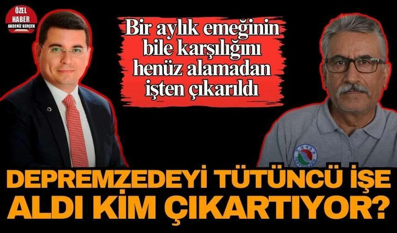 6 Şubat depreminde oğlunu ve gelinini, çok sayıda akrabasını kaybeden Mehmet Kamçı, 3 torunu ve eşi ile Antalya’ya geldi. 5-6 ay gibi bir süre Antalya Kredi Yurtlar Kurumu yurtlarında kalan Mehmet Kamçı, eşi ve 3 torunu, Kepez ilçesinde Dokuma’da kiralık ev tuttu. Ekonomik sıkıntı içerisinde olduğunu belirten Kamçı, Hakan Tütüncü ile sokakta karşılaştığını ve durumunu O’na anlattığını ifade etti. Tütüncü’nün ise Kamçı’nın durumuna duyarsız kalmayarak 3 ay sonra belediyede temizlik personeli olarak işe aldığı ileri sürüldü. Mehmet Kamçı’nın 1 aylık çalışmasının ardından ‘Yüksek yaşı’ sebebiyle işten çıkarılacağının söylendiği ve bu talimatın Hakan Tütüncü’den geldiği iddia edildi. Gazetemize konuşan depremzede Mehmet Kamçı, “Ekmeğimle neden oynuyorlar” diyerek dert yandı.
