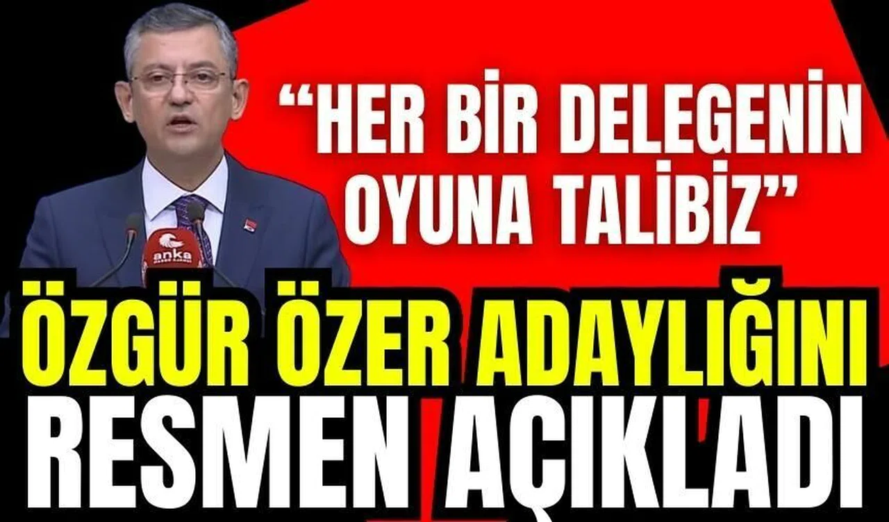 CHP Grup Başkanı Özgür Özel, partisinin genel merkezinde düzenlediği basın toplantısıyla genel başkanlığa aday olduğunu resmen ilan etti. CHP’nin kasım ayında yapılması planlanan 38'inci Olağan Kurultayı’nda CHP Genel Başkanı Kemal Kılıçdaroğlu’na karşı yarışacak olan Özel, kararını açıkladı.